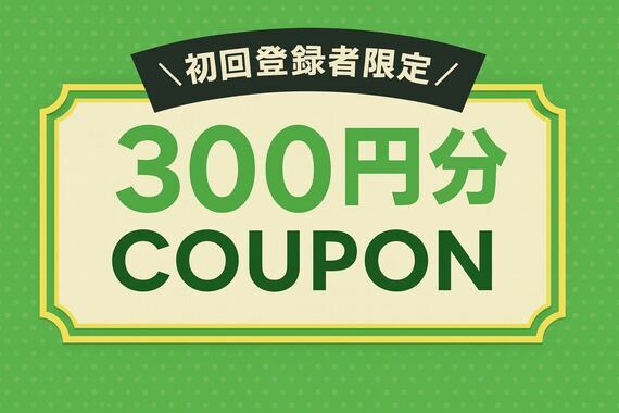 | 初回特典 | 初回コード入力で300円分 クーポンプレゼント |